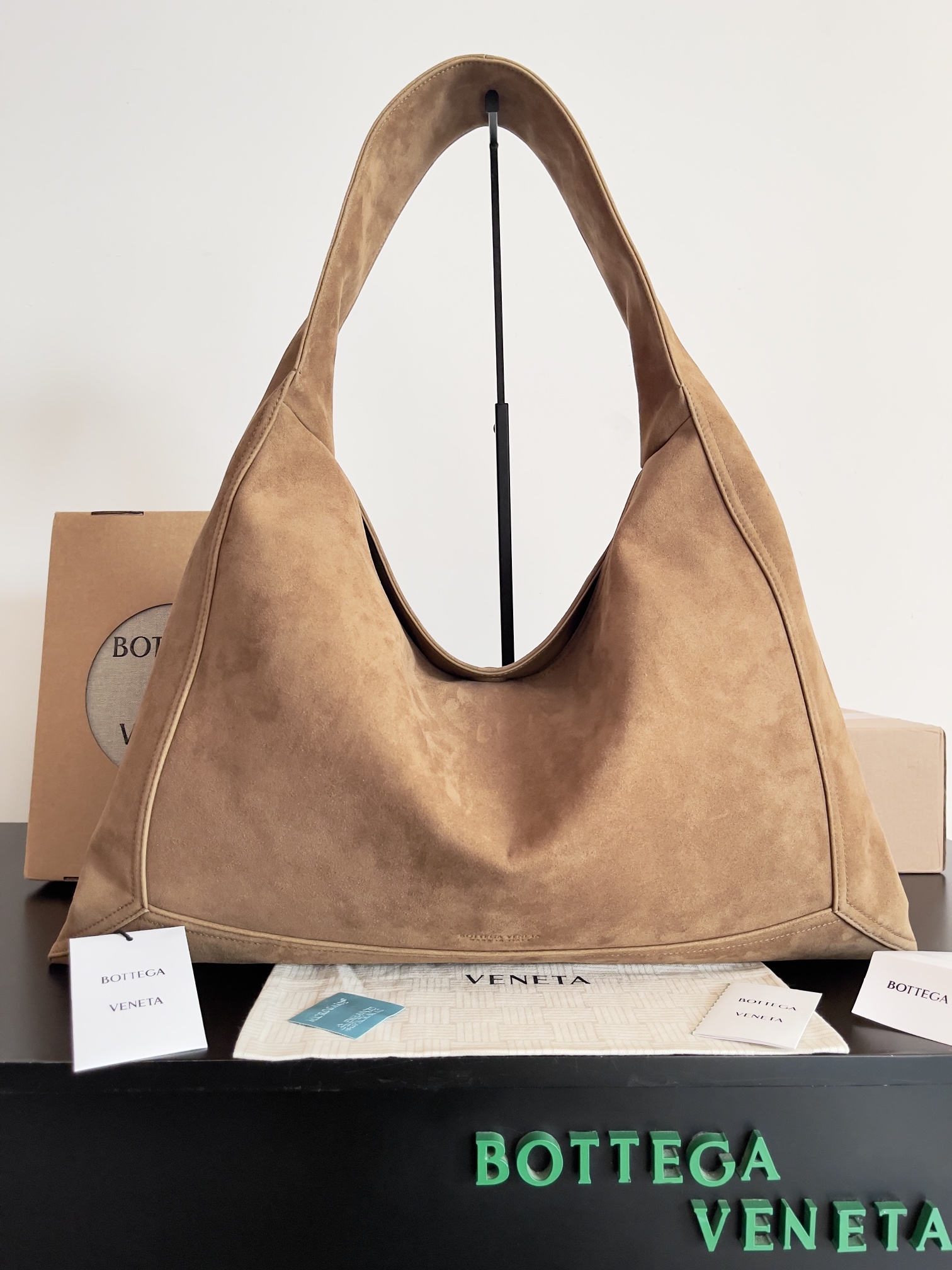 This Bottega Veneta large brown suede shoulder bag is the perfect blend of luxury and practicality. With its spacious interior and stylish design, it's ideal for everyday use.