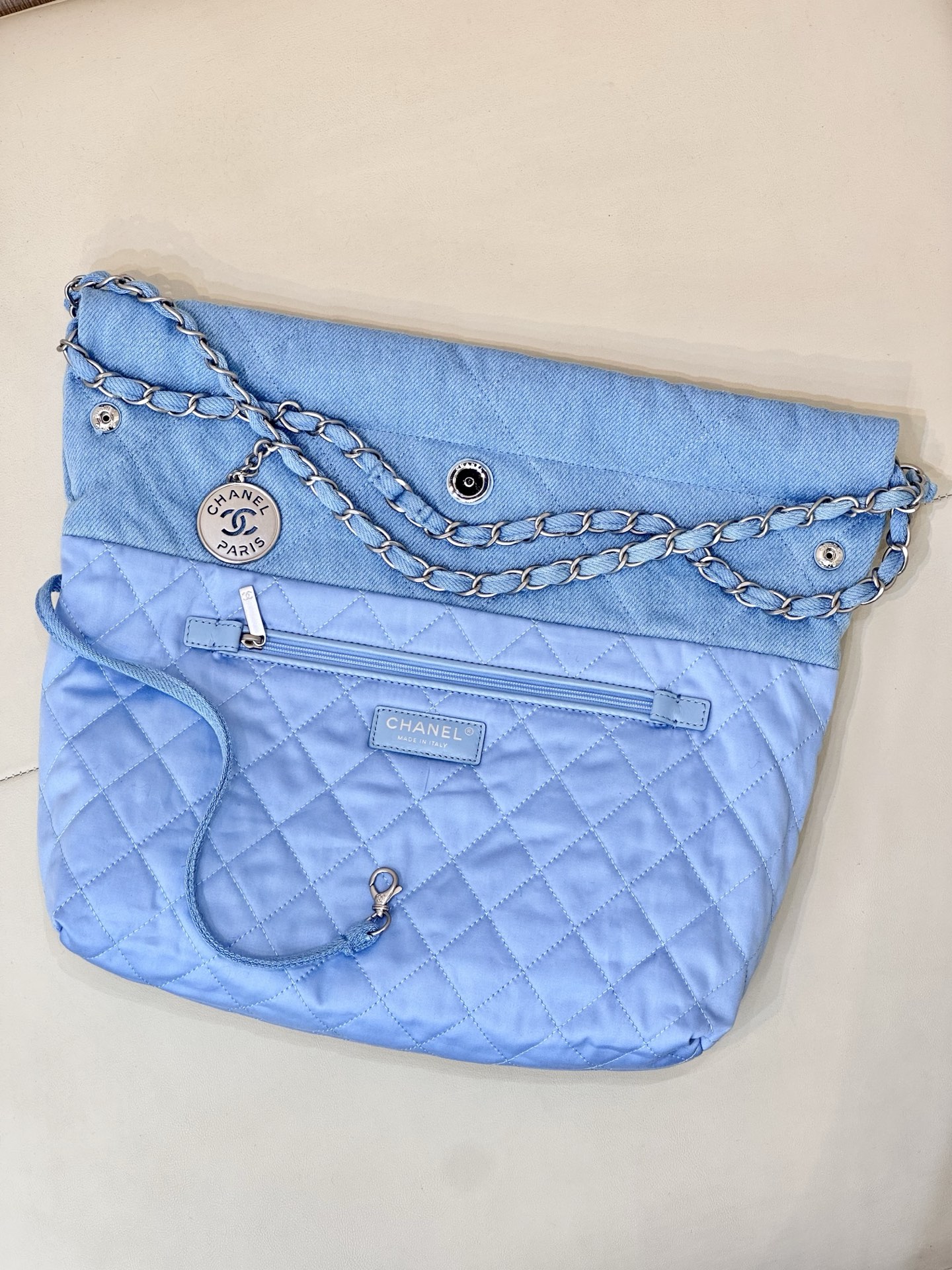 Tags: Chain Shoulder Bag, Chanel Flap Bag, Denim Quilted Bag, Designer Handbag, Luxury Bag, Removable Pouch Bag