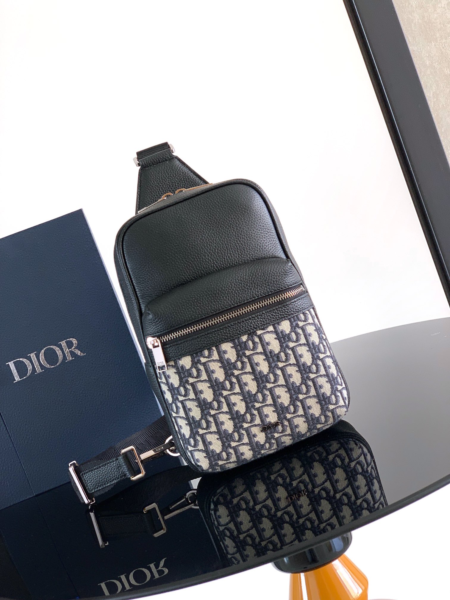 Tags: Adjustable Strap Bag, Designer Sling Bag, Dior Oblique Rider Bag, Leather Detail Bag, Luxury Crossbody Bag