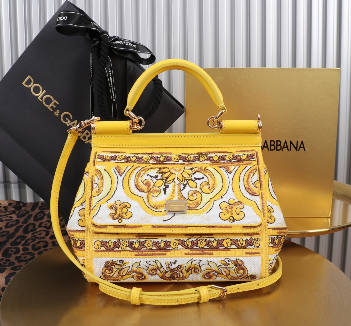 This Dolce & Gabbana Sicily bag is a fresh and vibrant addition to any wardrobe, featuring a delightful lemon print that captures the essence of Italian style.