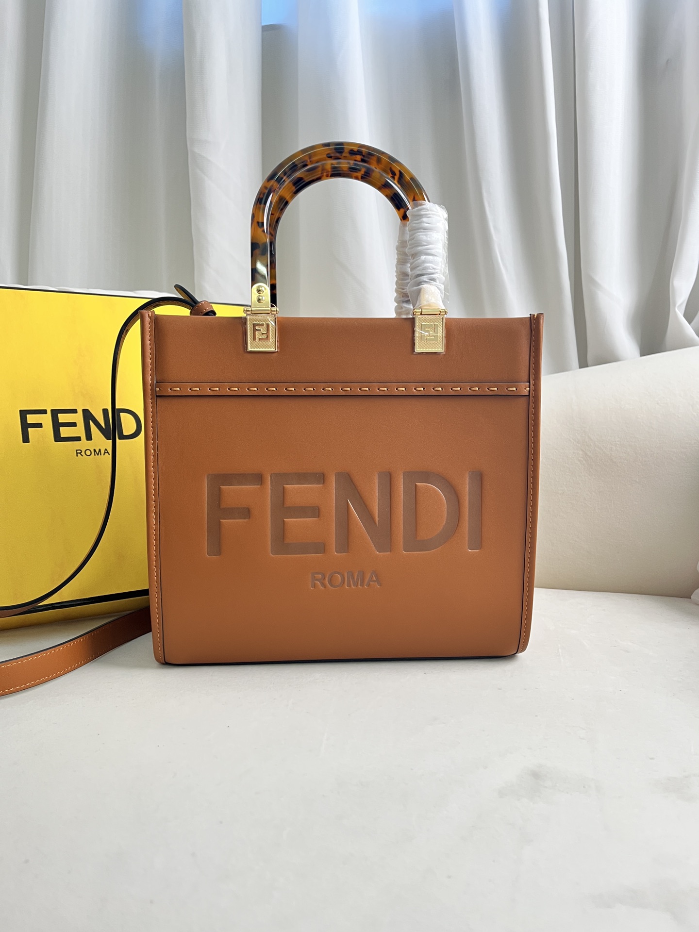Fendi Roma Embossed Leather Tote Bag with Amber Handles - Stylish & Functional
