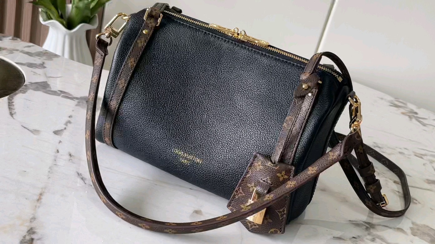 The bag is beautiful and versatile. I carry it as a crossbody during the day and as a shoulder bag for evenings out. The black leather and monogram combination is so chic!