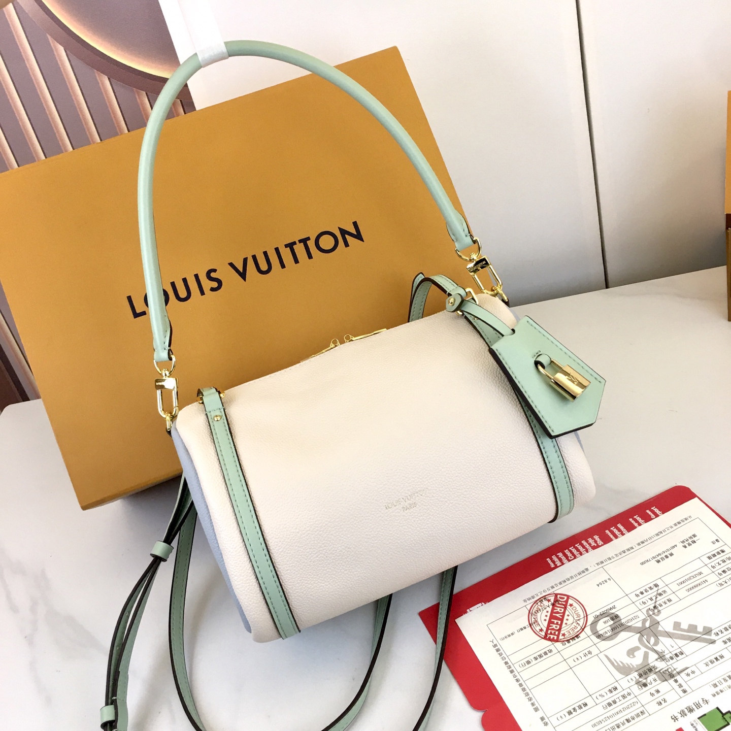 Tags: Designer Crossbody Bag, Louis Vuitton Handbag, Luxury Hobo Bag, Mint Accent Bag, White Leather Bag
