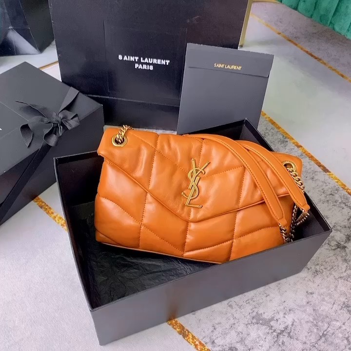 Tags: Caramel Lambskin Bag, Designer Shoulder Bag, Gold Hardware Bag, Quilted Leather Bag, Ysl Loulou Puffer Bag