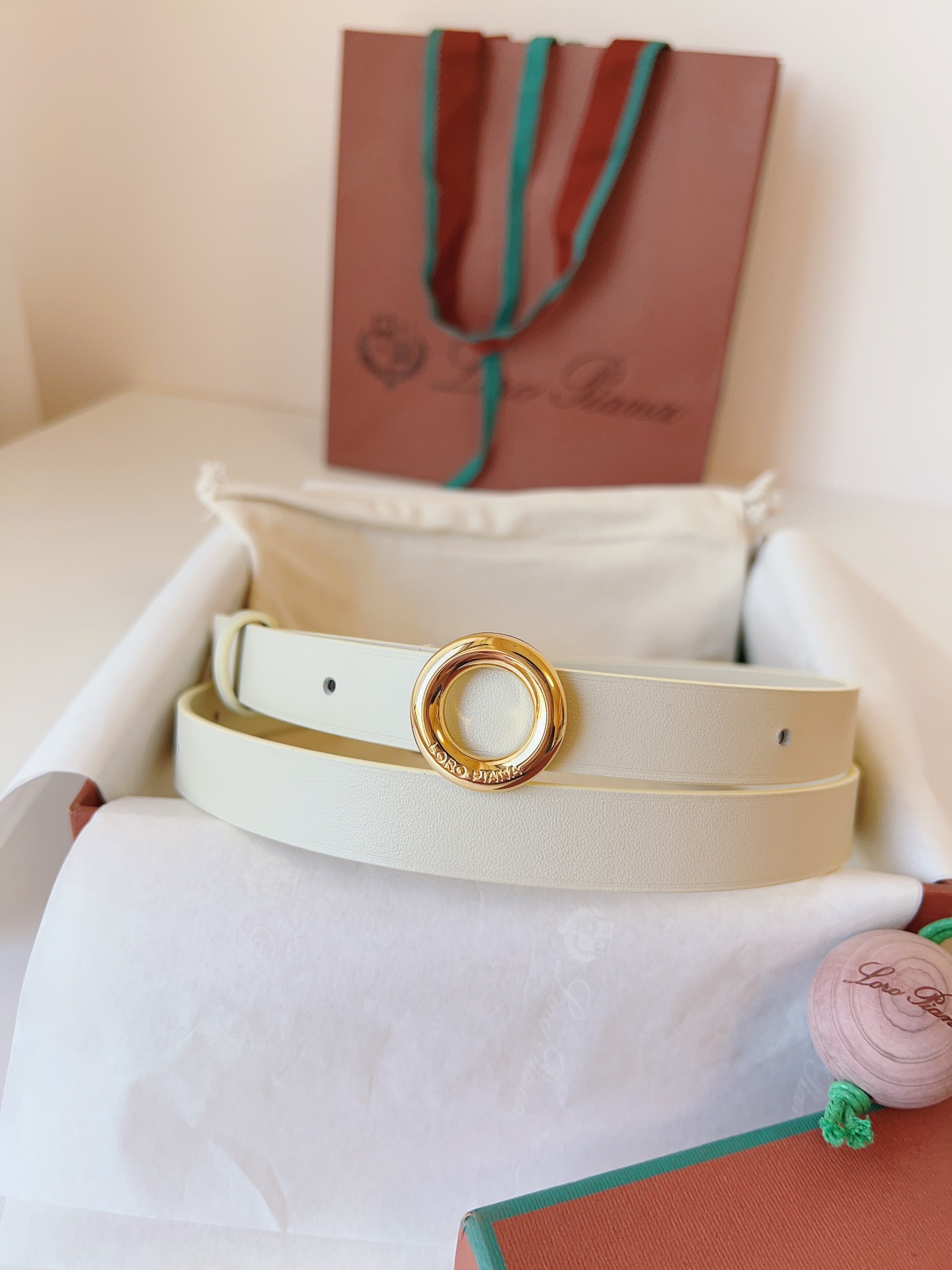 This Loro Piana belt is a luxurious addition to any wardrobe, blending classic design with high-quality materials.