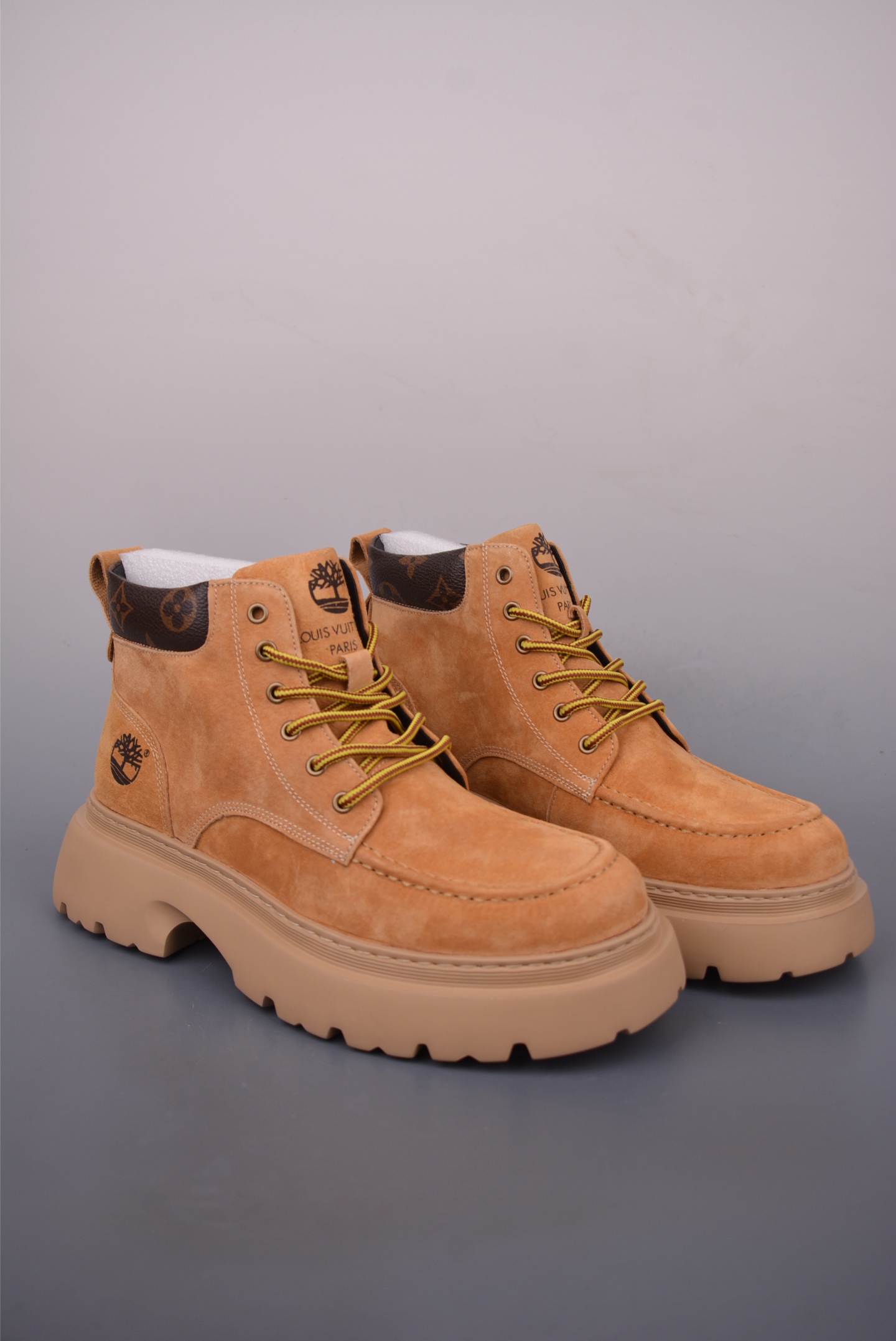 LV x Timberland Collaboration: Premium Suede Leather Lace-Up Ankle Boots