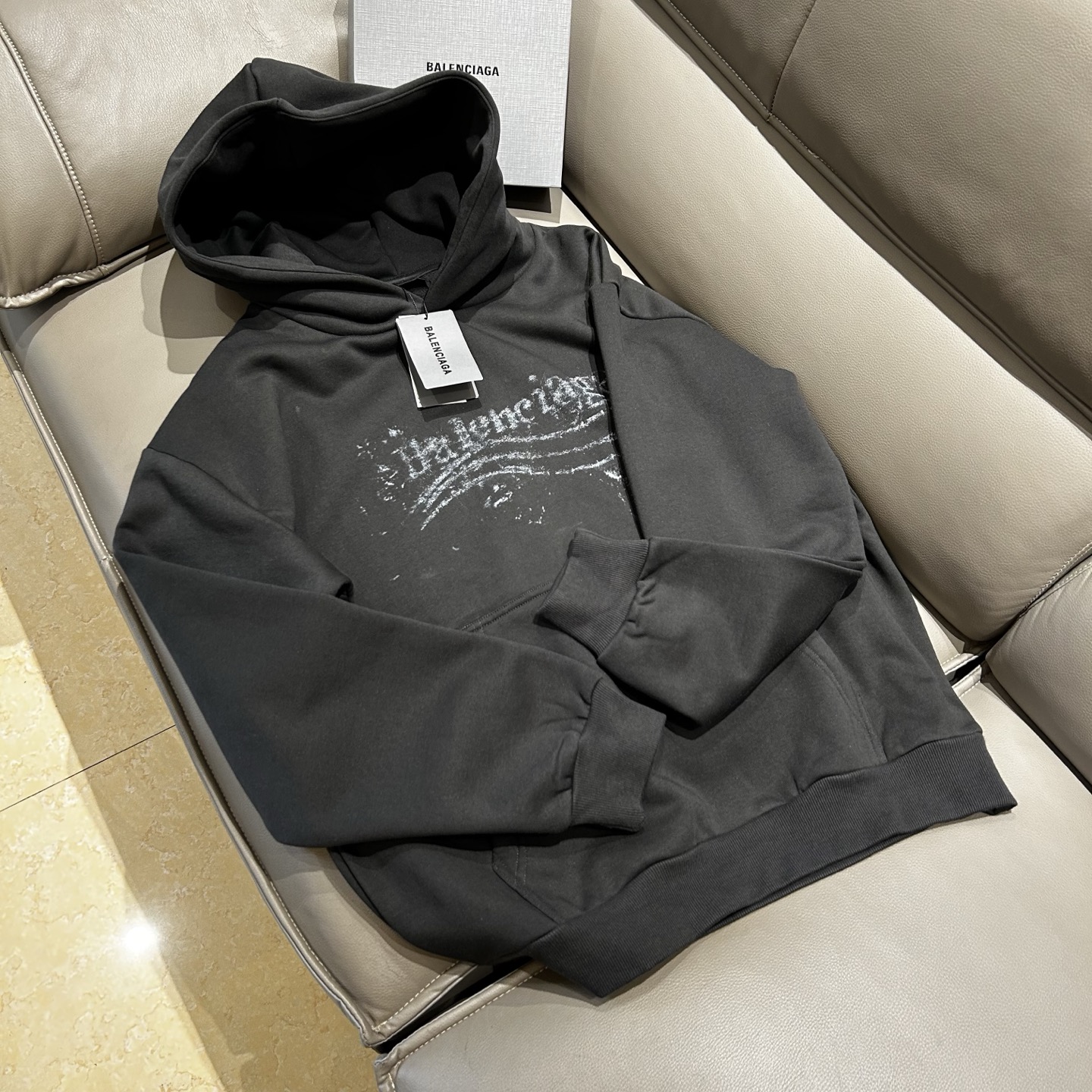 Elevate your style with this iconic Balenciaga hoodie. Perfect for layering or wearing on its own, it's a must-have for fashion enthusiasts.