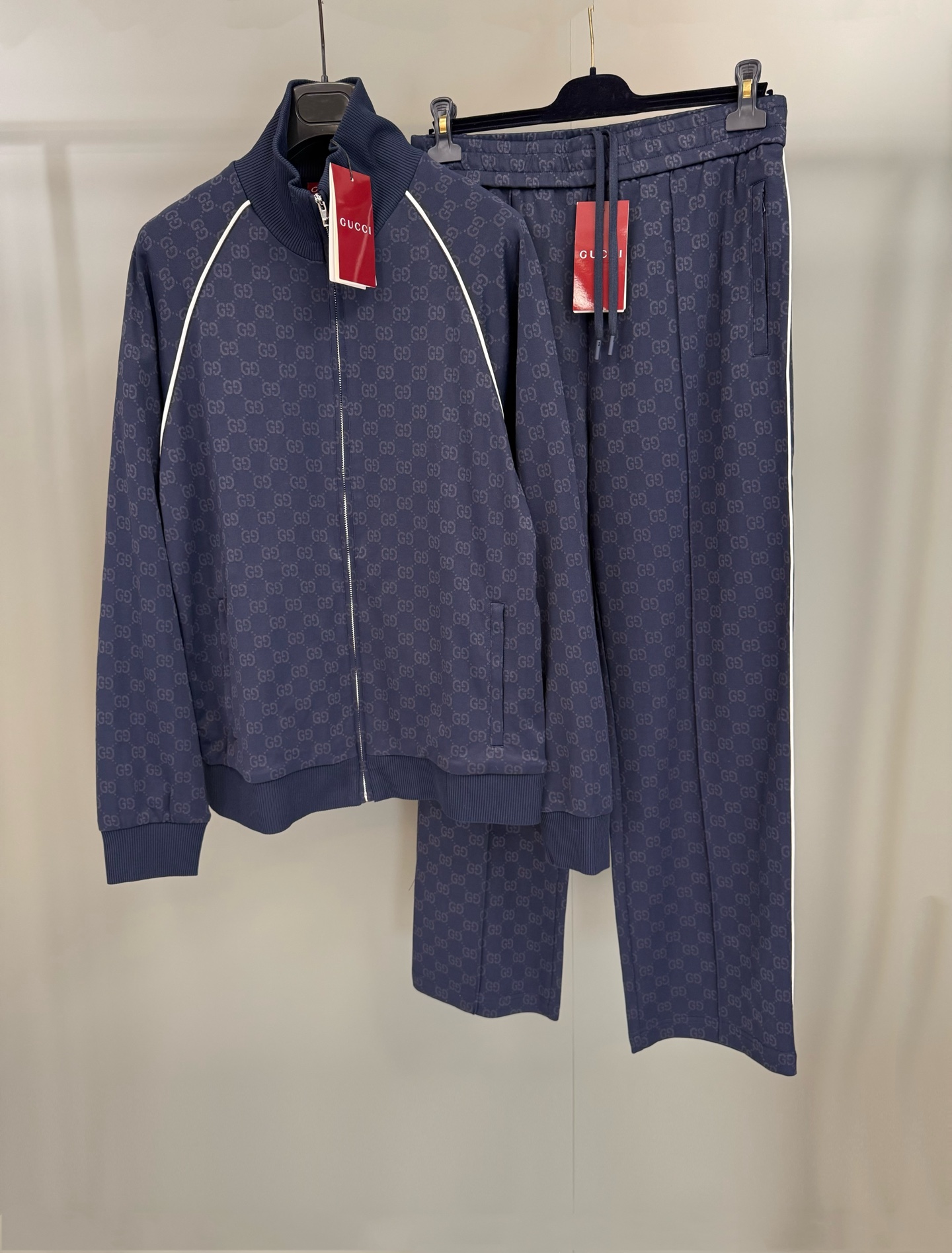 This Gucci tracksuit set is a statement piece that will elevate your wardrobe. Its comfortable fit and luxury design make it a must-have.