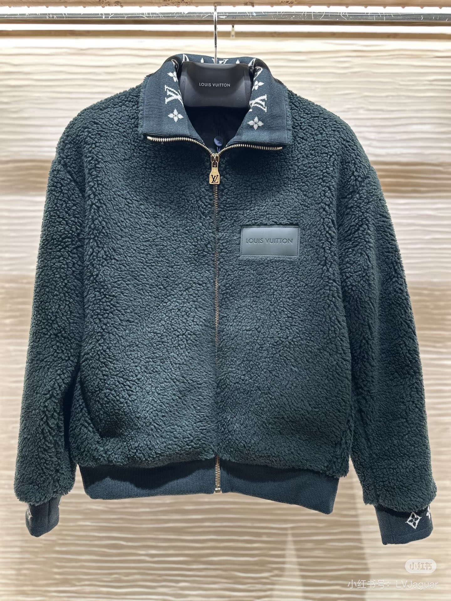 - Details: Monogram jacquard on cuffs and collar, LV patch on chest
