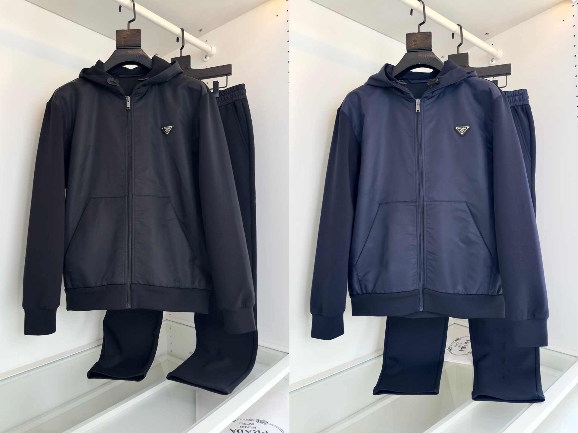 Tags: Designer Sweatpants, Luxury Hoodie Set, Men's Athleisure Wear, Mens Fashion Tracksuit, Prada Tracksuit Set, Stylish Loungewear