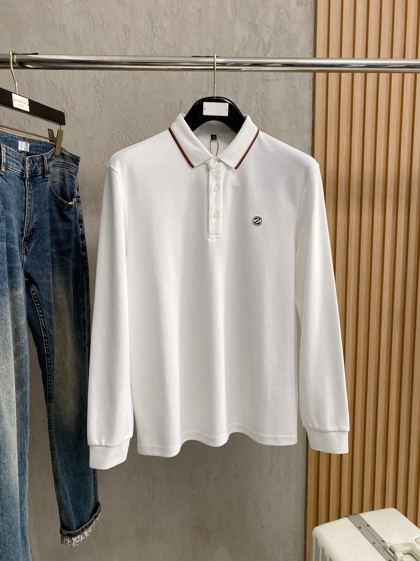 Zegna Men's Long Sleeve Polo Shirt - Soft Cotton, Embroidered Logo