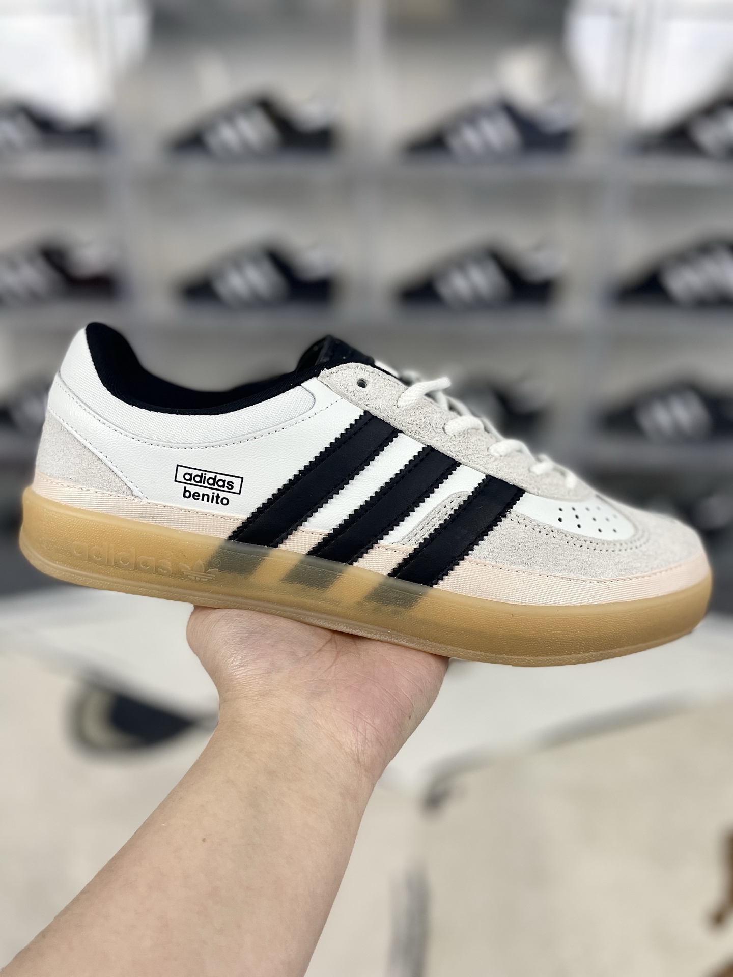 Tags: Adidas Gazelle Sneakers, Bad Bunny Adidas Shoes, Comfortable Sneakers, Low Top Sneakers, White And Black Sneakers