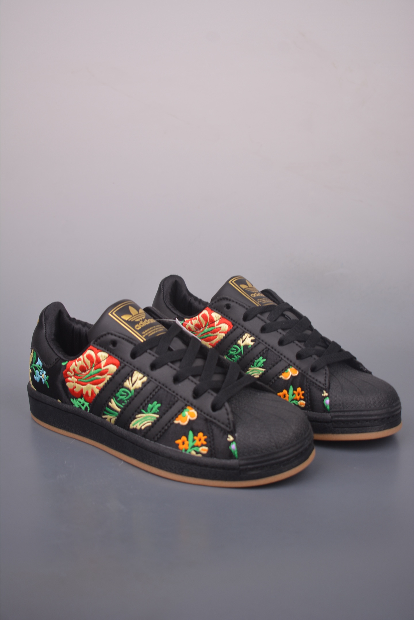 Adidas Originals Superstar Floral Embroidery Black Leather Casual Shoes