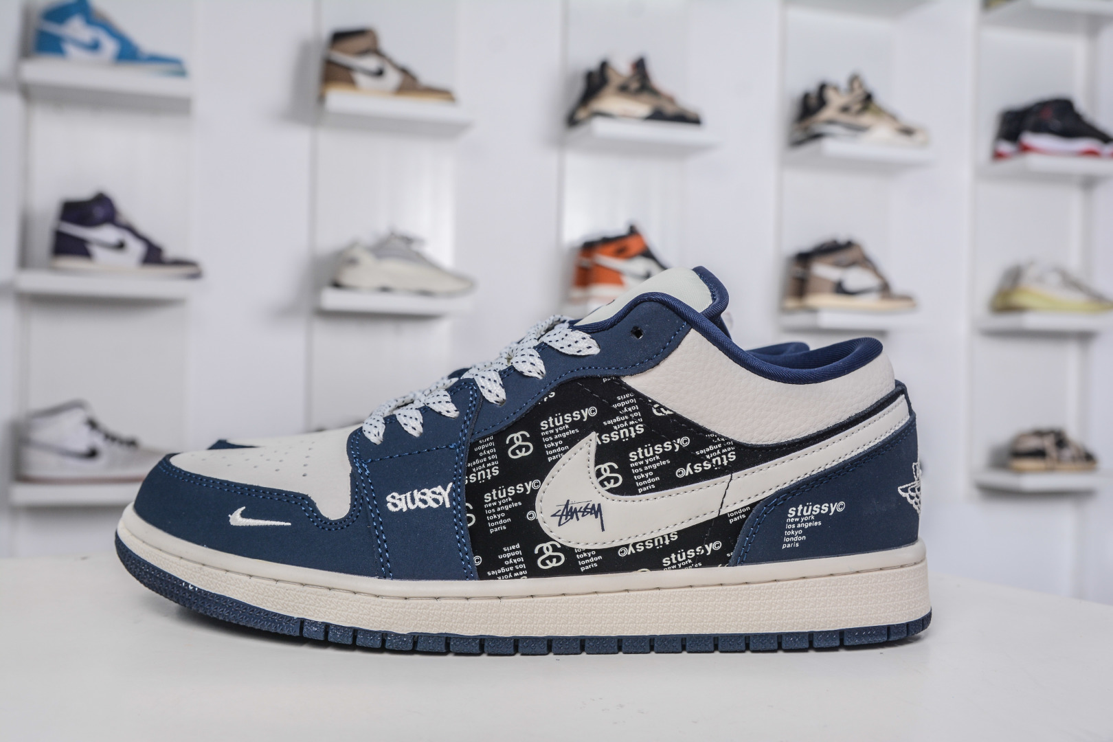 Air Jordan 1 Retro Low x Stussy Collab - White, Black & Blue - Size 36-45