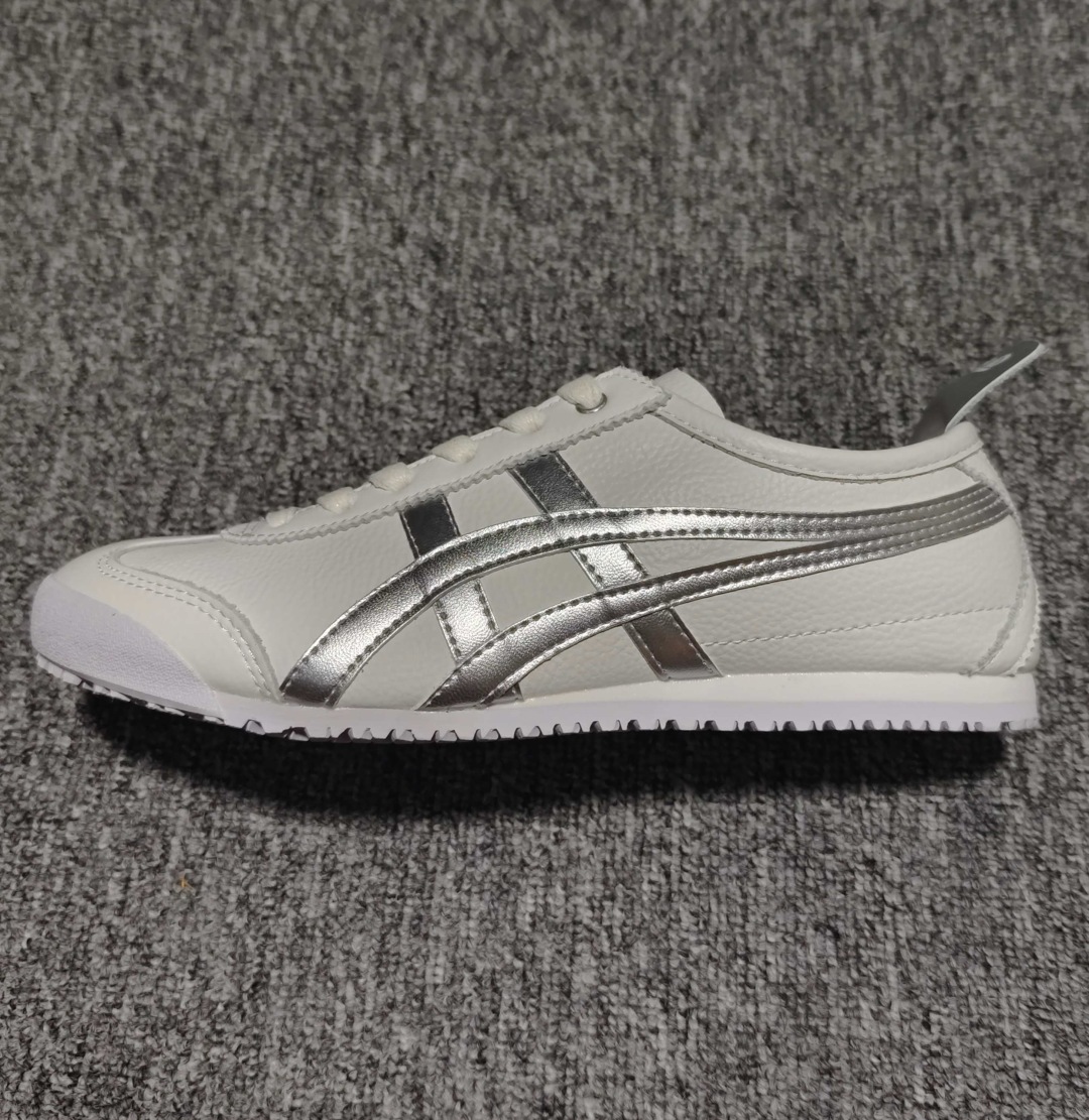 Onitsuka Tiger White Leather Sneakers with Silver Stripes - Sizes 36-45